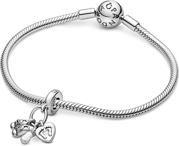 Charm colgante Pandora original con motivos para celebrar la llegada de un bebé. Un abalorio ideal para regalar a tu pareja o amiga. Charm compatible con las pulseras Pandora Moments o similares.